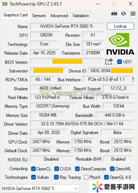 本站 4 月 15 日消息,英伟达RTX 5060 Ti 显卡有望在本月发售,外媒 VideoCardz 今日晒出了一张GPU-Z 的截图,确认了新显卡的规格信息。