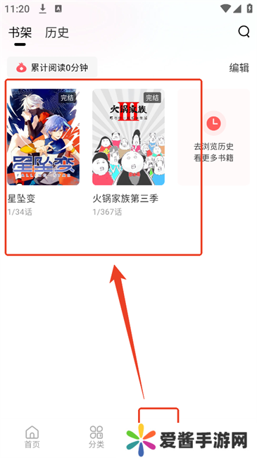 4、返回软件,点击软件主页面下方的【书架】,可以看到已经收藏的作品