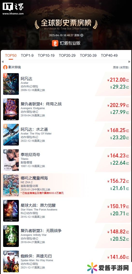 截至本站发文,《哪吒之魔童闹海》位列全球影史票房榜第 5,全球总票房达 156.72 亿元。