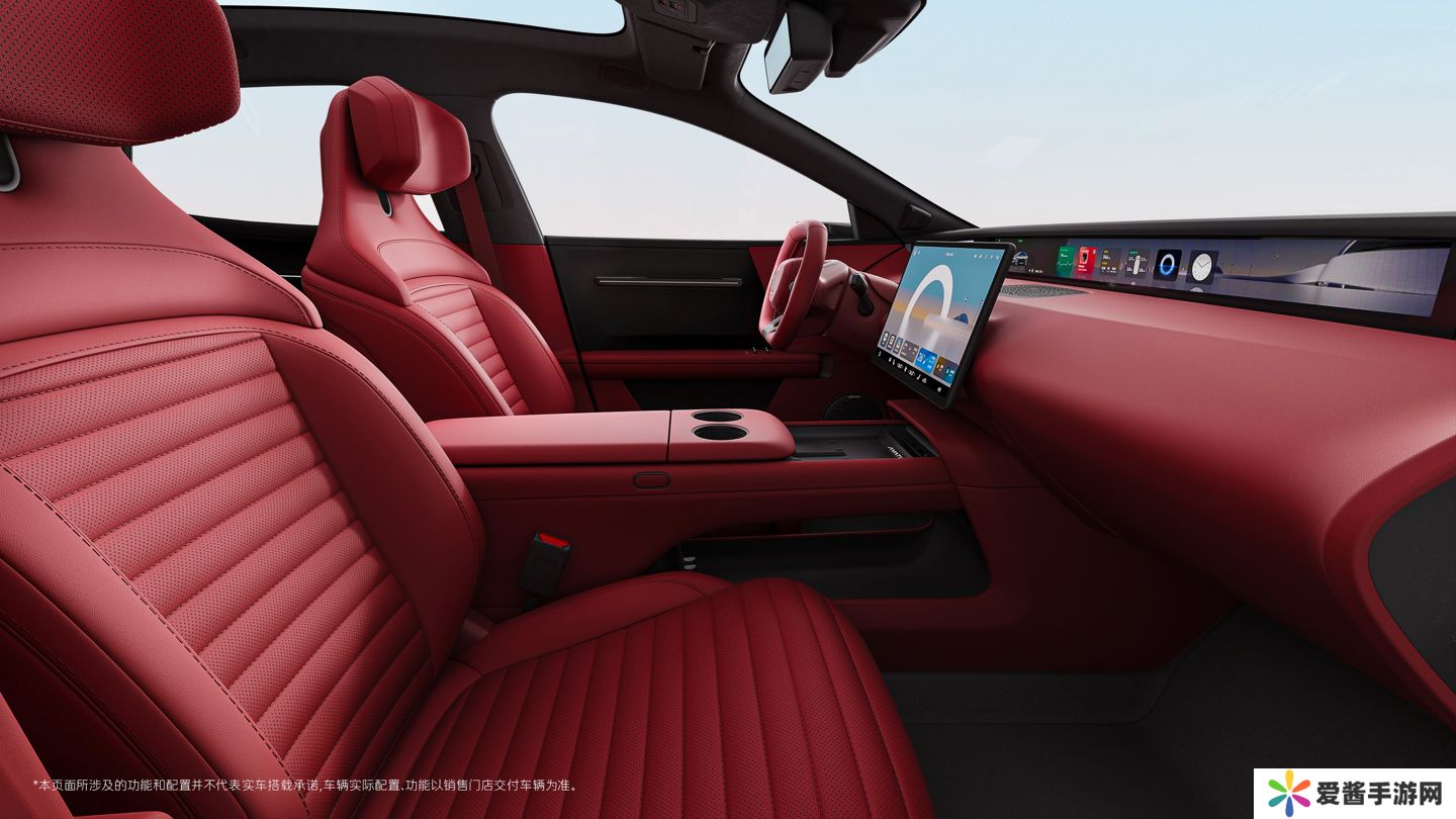 新车拥有“舒压豪华座舱”,全系搭载前排电动门,支持智能防撞 / 智能悬停。新车的其他标配还包含流媒体内后视镜、英国之宝音响、双零重力座椅。其内饰采用 7㎡软包材质,可选全新的“岱红”配色。车内配备了 25 个扬声器,支持 7.1.4 全景声,输出功率可达 2016W。