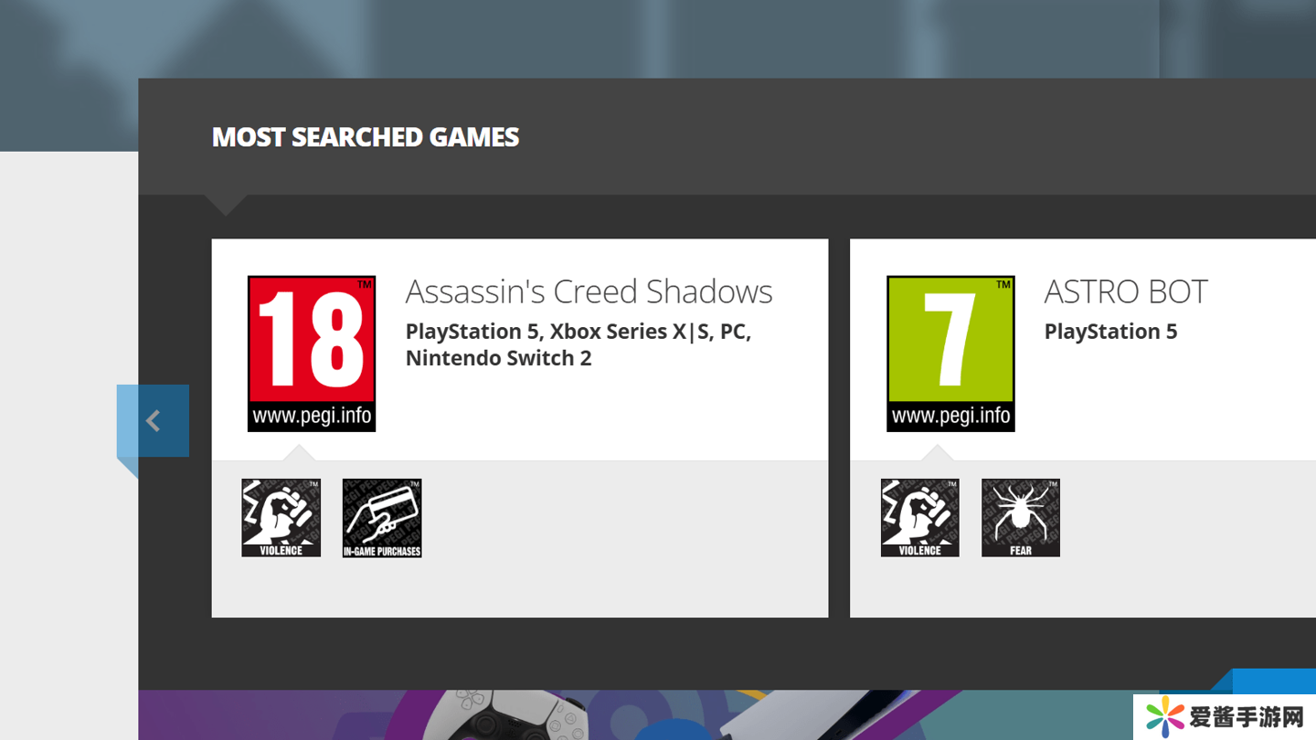 本站 4 月 19 日消息,欧洲游戏分级组织(PEGI)官网将《刺客信条:影》支持平台标注为 PS5、Xbox Series X|S、PC、任天堂 Switch 2,但点击进入详情页后并未显示 Switch 2标识。
