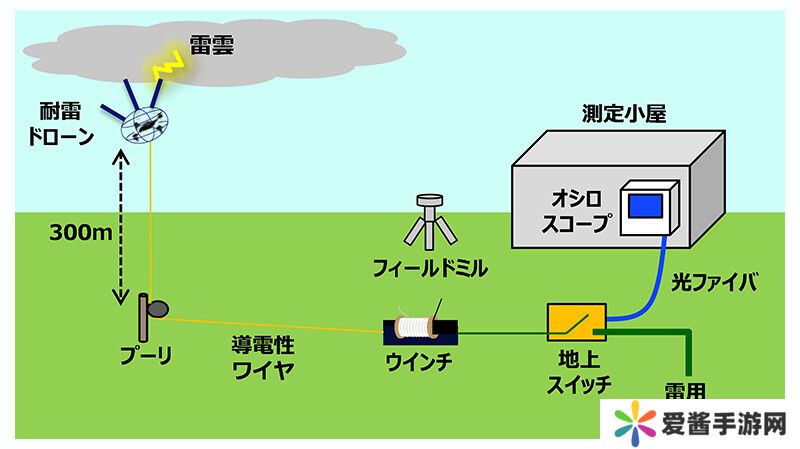 在实验中,研究人员使用了一种名为“场强计”的装置对地面电场进行观测,并在雷云临近时放飞了装有独特防雷笼的无人机,以诱发雷电(图 1)。