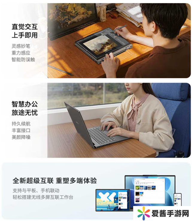 屏幕方面,该产品配备高素质的一体玻璃触控 OLED 屏幕、10 点触控,支持 1920x1200 分辨率、500nits 高亮度、100% DCI-P3(典型值)、硬件级低蓝光等。