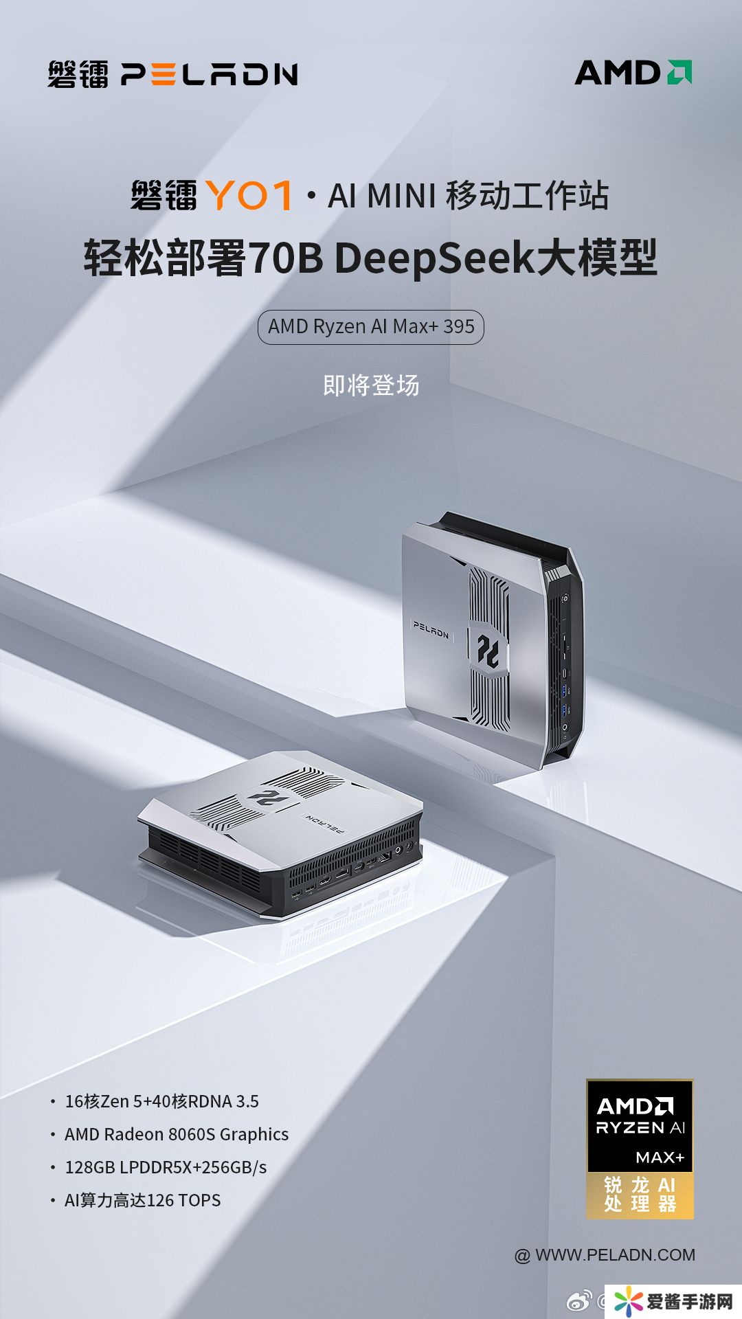 本站 4 月 26 日消息,磐镭昨日宣布将推出一款搭载 AMD 锐龙 AI Max+ 395 处理器的 YO1・AI MINI 移动工作站,配备 128GB LPDDR5X 内存,可部署 70B 参数 DeepSeek 大模型。