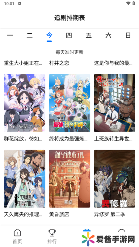 3、在排期表界面下,我们能够看到每一天的动漫更新计划。