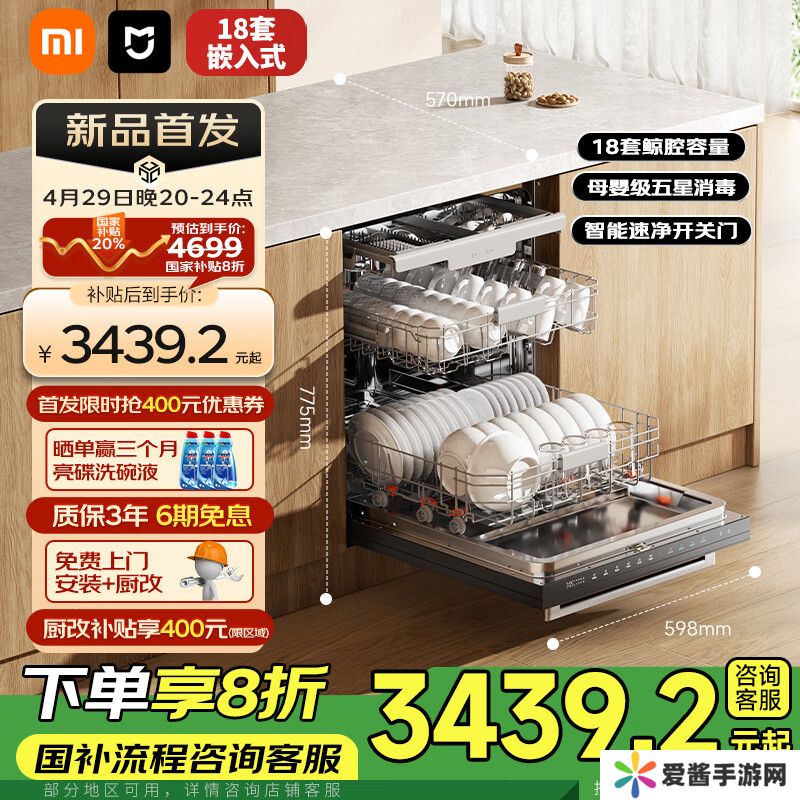 京东小米米家智能嵌入式洗碗机 18 套 S20 券后 4299 元(国补价 3439.2 元起)领 400 元券网发此文仅为传递信息,不代表认同其观点或证实其描述。同时文中图片应用自网络,如有侵权请联系删除。