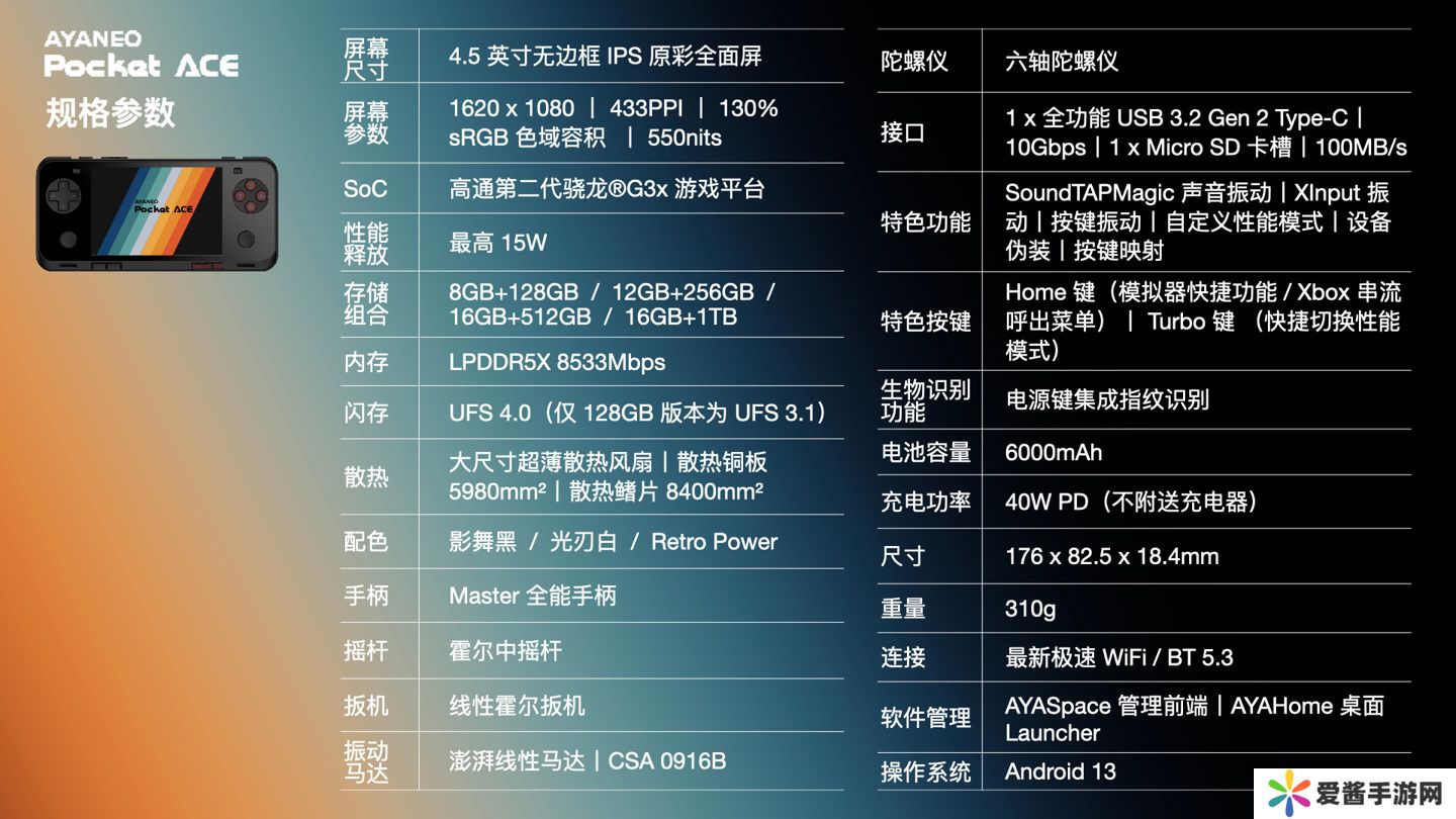 本站 4 月 28 日消息,安卓掌机 AYANEO Pocket ACE 今日正式发布,这款掌机以横版复古设计,同时搭载高通第二代骁龙 G3x 游戏平台。