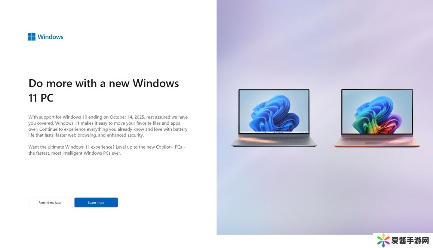 本站 4 月 29 日消息,伴随着 Windows 10 系统将于 2025 年 10 月 14 日终止支持,微软通过博文方式之外,还通过全屏弹窗的方式,力荐用户升级 Windows 11,尤其是购买 Windows 11 AI+ PC 体验更强安全、更丰富功能。