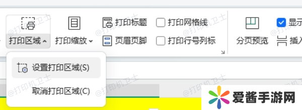 点击“页面布局”选项卡中的“打印区域”,在下拉菜单中,选择“设置打印区域”。