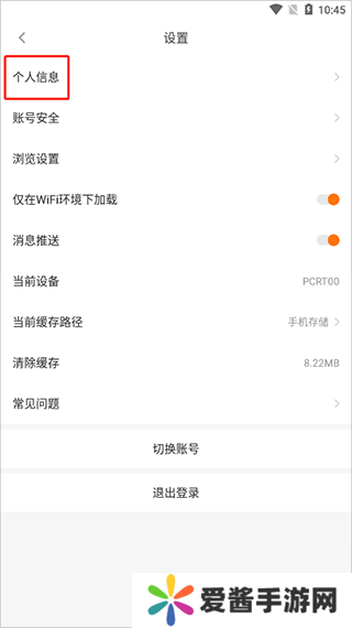 3、进入设置界面后,点击页面中的个人信息菜单;