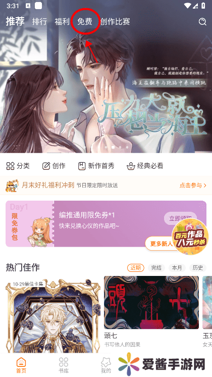 橙光阅读器官方正版使用攻略1、进入橙光阅读器之后,点击右上角免费;