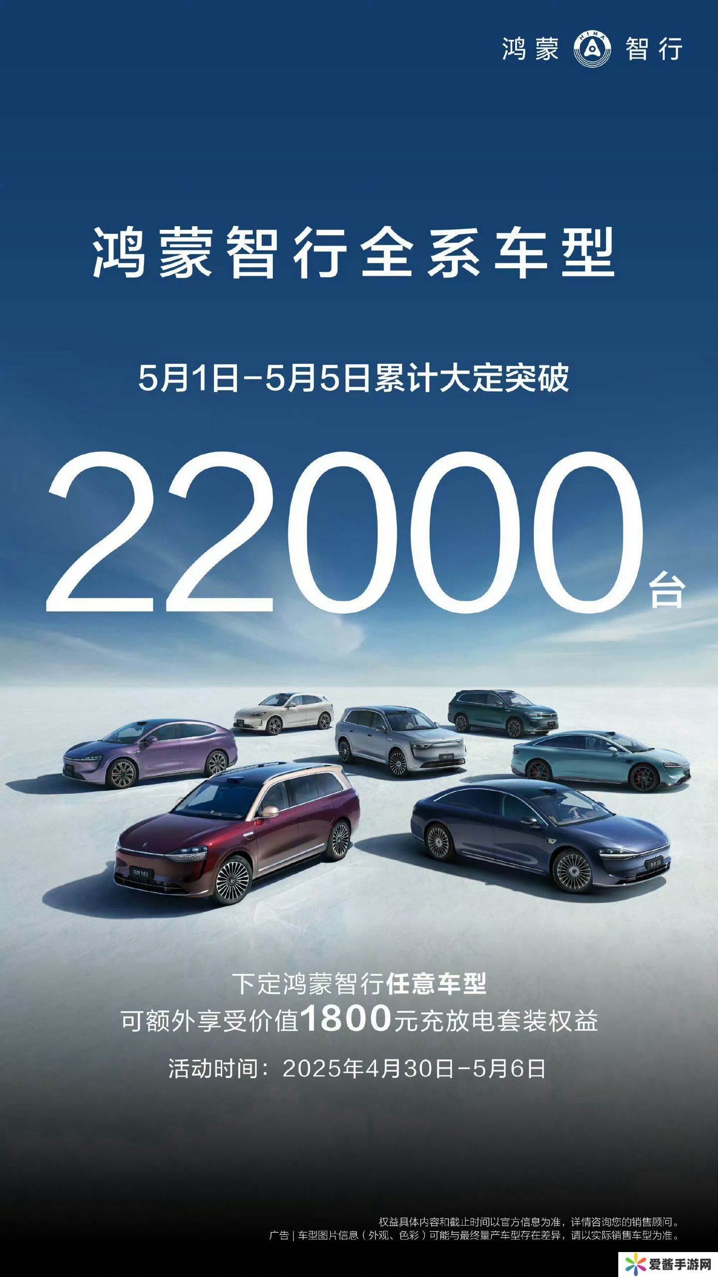 本站 5 月 5 日消息,据多位博主 / 用户分享,鸿蒙智行全系车型5 月 1 日-5 月 5 日大定突破 22000 台。
