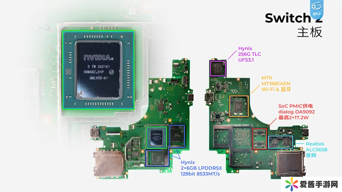 本站 5 月 7 日消息,距离任天堂 Switch 2 正式发售还有大约一个月的时间,但B站博主 @极客湾 已经抢先拿到了这款即将上市主机的主板。极客湾从二手平台闲鱼购入了这块主板,并在确认了 PCB 上隐藏的一些细节后,确定这是一块货真价实的任天堂 Switch 2 主板。随后,极客湾对该主板进行了完整的拆解和硬件分析,揭示了任天堂尚未公布的 Switch 2 技术细节。