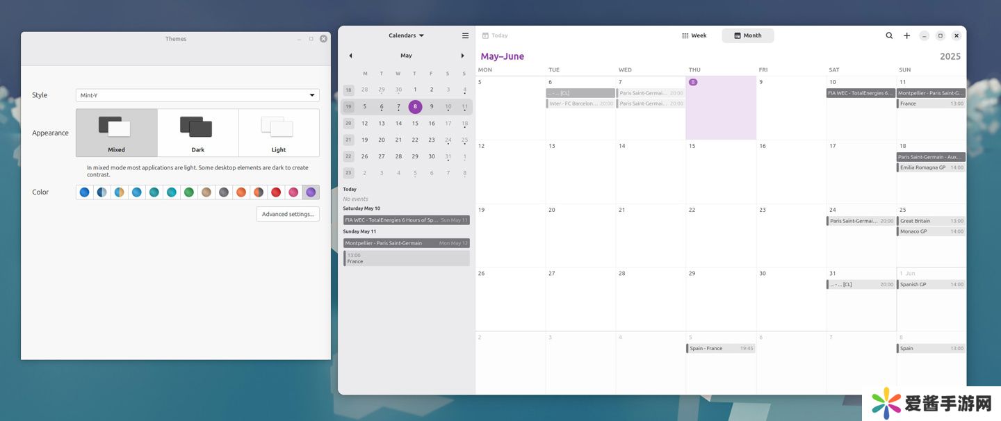 浅色模式下,标题栏变得更明亮;深色模式则稍显深沉,并同步调整了悬停效果。这种微妙的蓝色调常被设计师用来赋予中性灰色更“金属”与现代的质感,让 Mint 外观更时尚,却不张扬,展现出低调的精致。