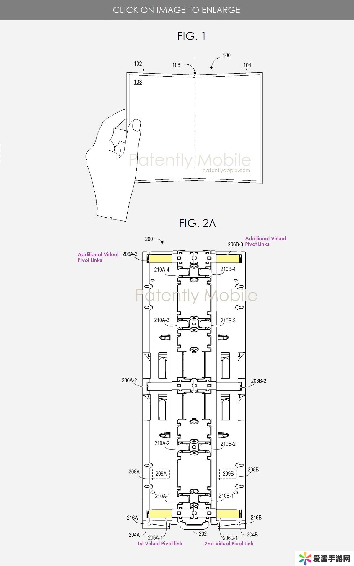 该专利的独特设计之处在于,虚拟枢轴链接通过虚拟枢轴(virtual pivot)与铰链脊活动连接,显示支撑则以滑动方式附着于链接之上。