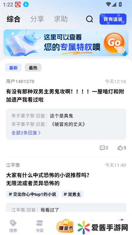 4、在社区界面下,我们可以和一众书友进行小说剧情讨论。