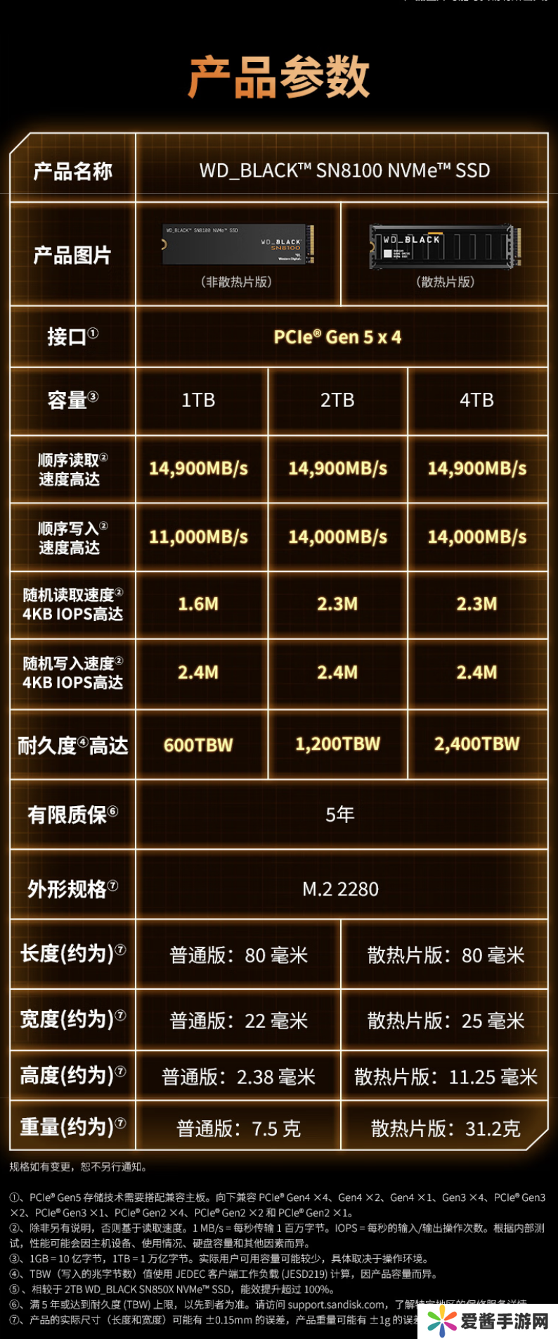 这是WD Black产品线下首款PCIe 5.0 SSD,采用了TLC 3D CBA NAND,其读取速度高达14.9 GB/s,从纸面数据来看也是当前最快的消费级PCIe 5.0 SSD。