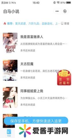 白马小说在线阅读是一款可以轻松阅读完本小说书籍的软件,汇聚了很多经典且热门的小说书籍,还拥有全面的小说榜单,包括新书榜,热门榜,精品榜等,可以轻松选择查看,随时随地自由获取热门的小说作品,方便用户自由阅读看书,还拥有各种优秀的小说标签,涵盖都市,冒险,异能,修仙等最新小说,可以轻松阅读最新的小说书籍和内容,能完全满足用户的所有阅读需求,还可以直接查看用户的阅读历史,方便用户轻松看书。