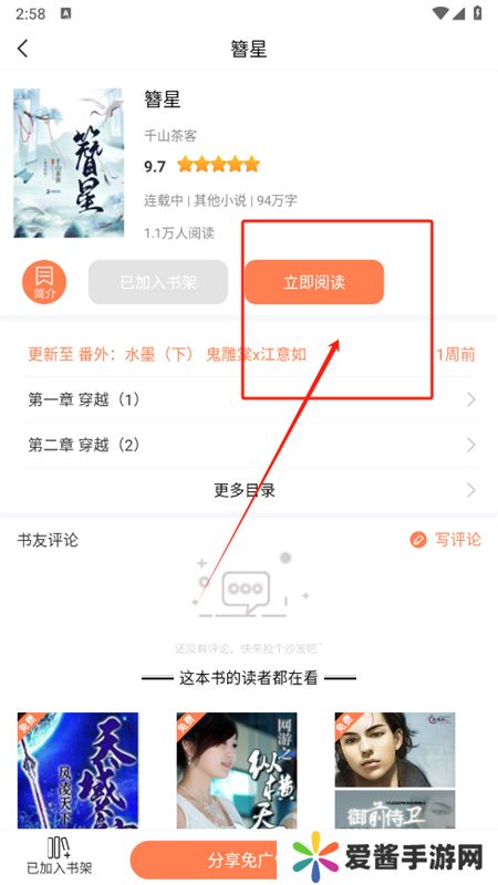 2、将喜爱的小说内容加入到书架后,你就免费获取一个追书神器,守护用户。