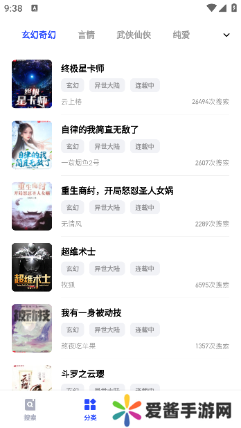 4、还可以通过搜索的方式查找感兴趣的小说。