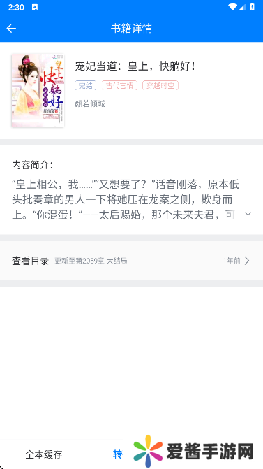 4、离线阅读方法:在书籍详细信息页面点击缓存按钮,自由选择章节范围下载,在没有网络环境的情况下也能开心阅读。