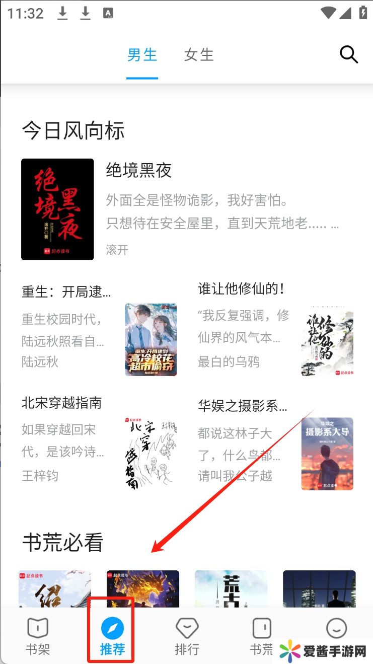 笔趣阁免费电子书官方正版使用攻略-如何收藏1、点击“推荐”进入书籍推荐页面。