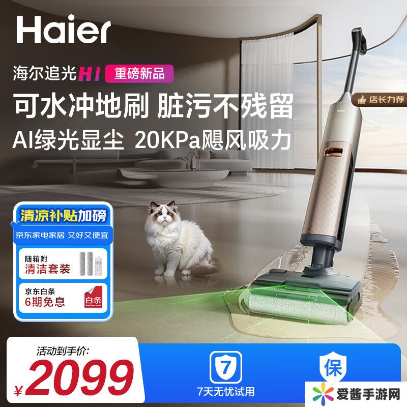 本站 7 月 27 日消息,海尔现已在京东上架一款追光 H1 洗地机,该洗地机主打“20000Pa 吸力、绿光显尘、180 度平躺”,定价为 2099 元。