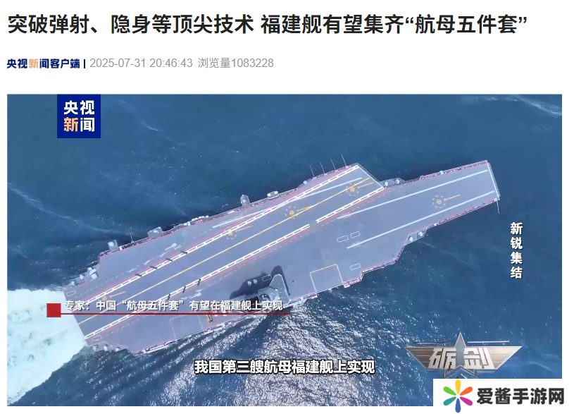 本站 7 月 31 日消息,据央视新闻今日报道,军事评论员张军社表示:随着歼-15T 等舰载战斗机公开亮相,外界长期以来一直在议论的中国航母舰载机“五件套”正在逐步实现。我想这个“航母五件套”舰载机,将来可能会在我国第三艘航母福建舰上实现。