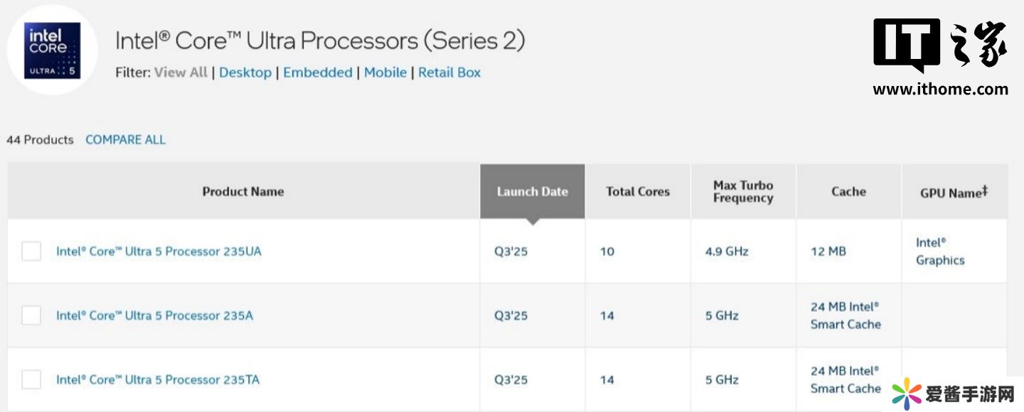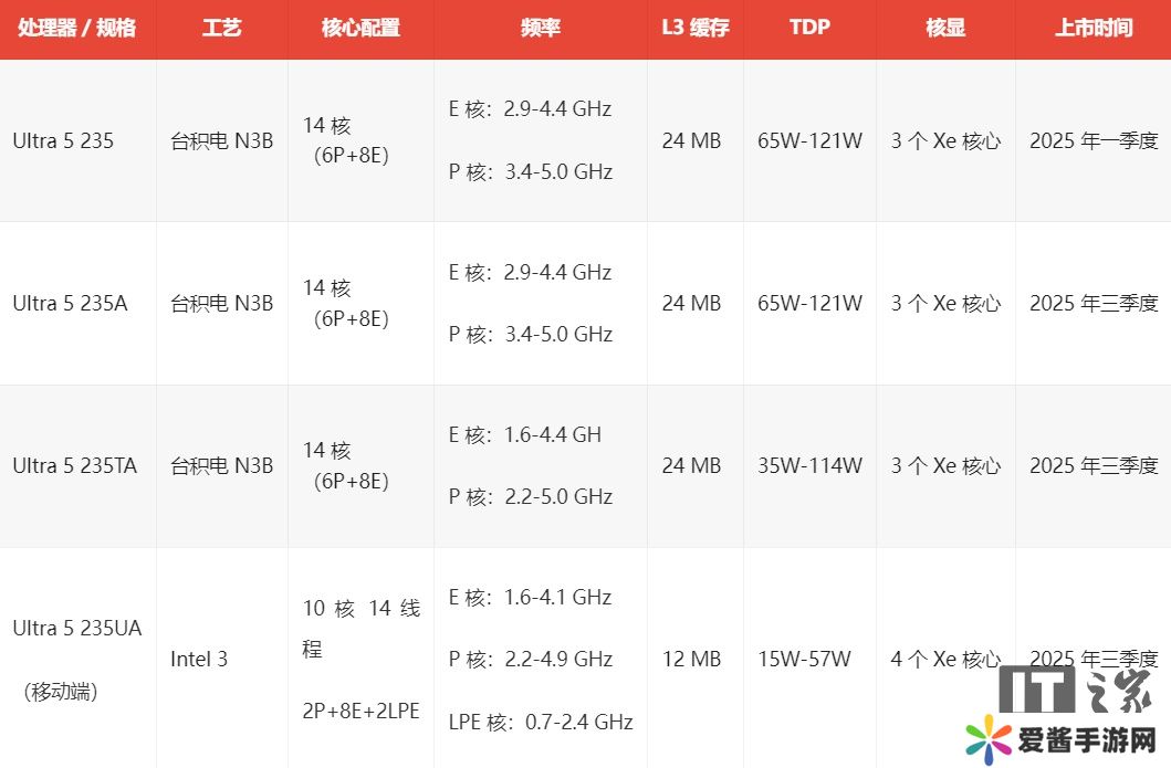 本站 7 月 31 日消息,英特尔今日在官网悄悄推出了三款 Arrow Lake 中低端处理器,分别为 Ultra 5 235A、Ultra 5 235TA 和 Ultra 5 235UA,三款新品都将在今年三季度上市。