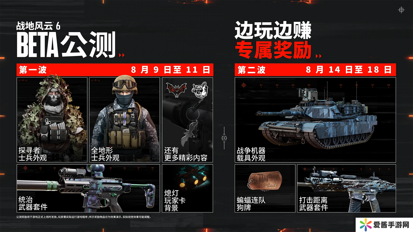 EA 确认,《战地 6》将于 8 月开启 Beta 公开测试,相当于免费周末活动,第一周从 8 月 9 日至 10 日,第二周从 8 月 14 日至 17 日。另外,参与合作平台活动可解锁兑换码,提前于 8 月 7 日 16:00 至 9 日 16:00 加入战场。