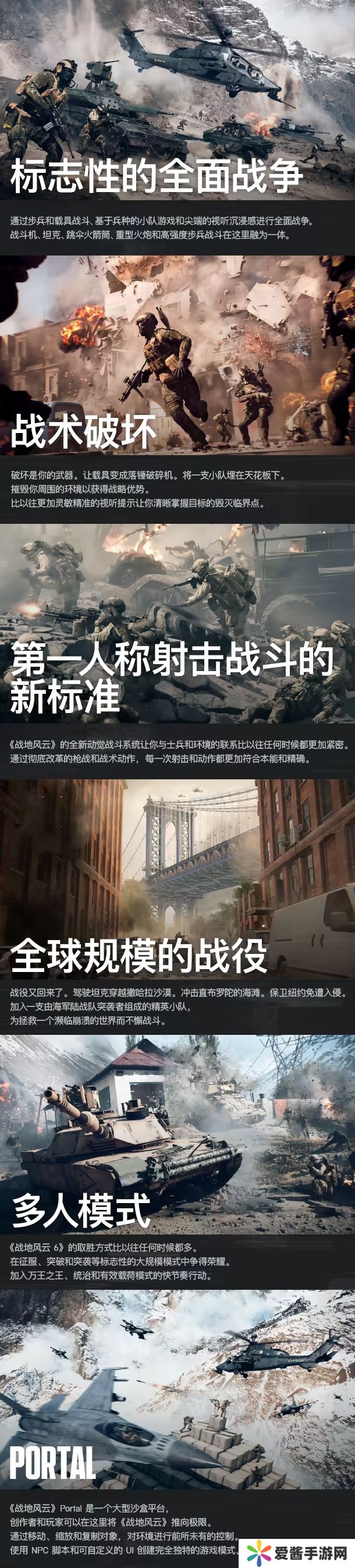 通过步兵和载具战斗、基于兵种的小队游戏和尖端的视听沉浸感进行全面战争。战斗机、坦克、跳伞火箭筒、重型火炮和高强度步兵战斗在这里融为一体。这是只会在《战地风云》发生的战争。