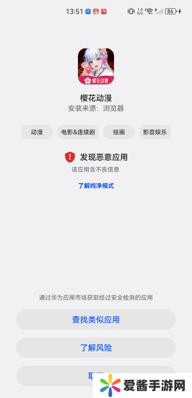 2、系统发现恶意应用,可能是误判,需要点击“了解风险”。