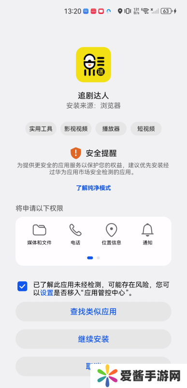 3、接下来点击勾选“已了解此应用未经检测……”,点击“继续安装”。(还可以点击了解纯净模式)