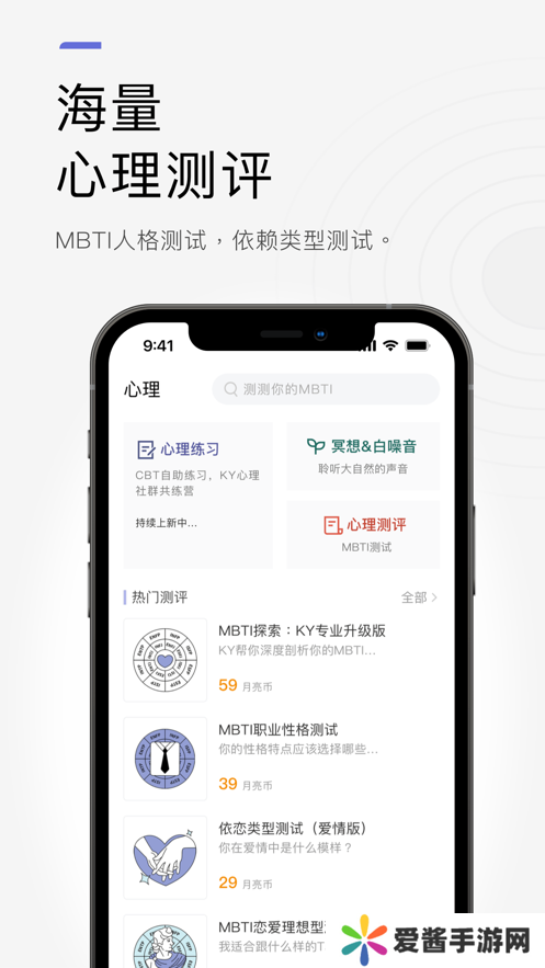 月食围绕缓解焦虑、提升自尊、转变不良依恋、减压助眠等心理调节目标,研发了各种专业、实用的自助工具,包括CBT、冥想、测评等,帮你预防与解决轻量级心理健康需求。