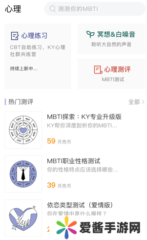 月食研发了一系列自助工具,包括CBT、冥想、测评。