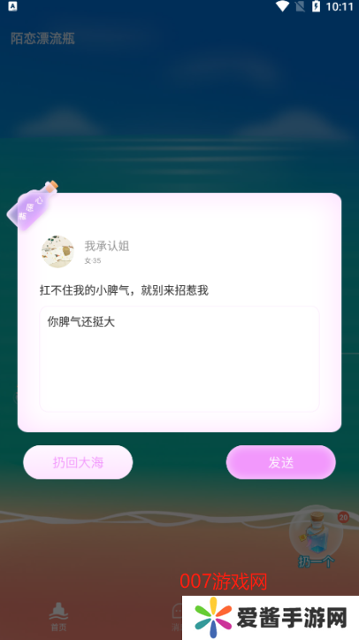 陌恋漂流瓶怎么用1、首先你需要在007游戏网进行下载安装陌恋漂流瓶,进入软件