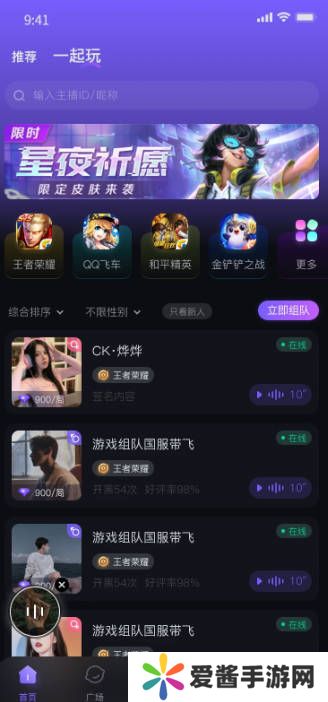 3、进入到软件主页选择喜欢的游戏就能够与朋友进行语音开黑啦