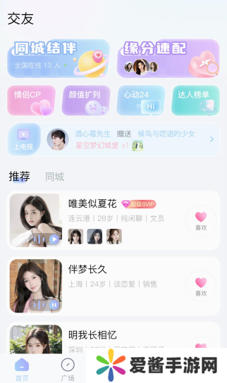 1、这里有大量活跃用户,24小时交朋友,找另一个伴侣也很方便;