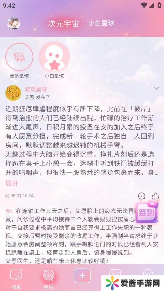 一个兴趣交友平台,选择一个身份进入次元星球,这里都是和你一样有着相同兴趣爱好的人,也许你们对小说感兴趣,也许是游戏,也许是动漫....打开脑洞,谱写一篇篇故事,交到知心好友很简单!