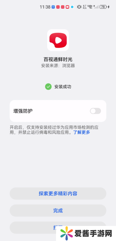 5、最终,出现绿色对号,说明“安装完成”,点击打开,即可体验。