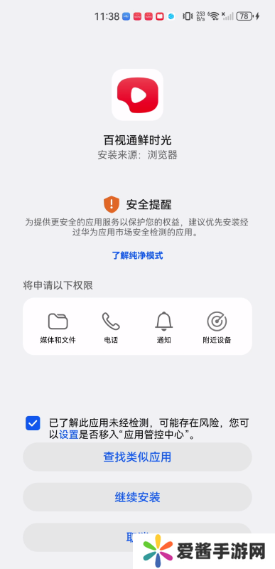 3、第三步,点击勾选“已了解此应用未经检测……”,然后再点击“继续安装”。(出现安全提醒,不用惊慌)