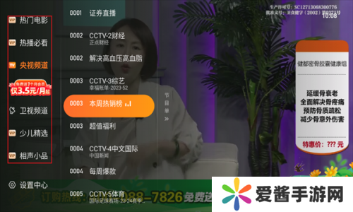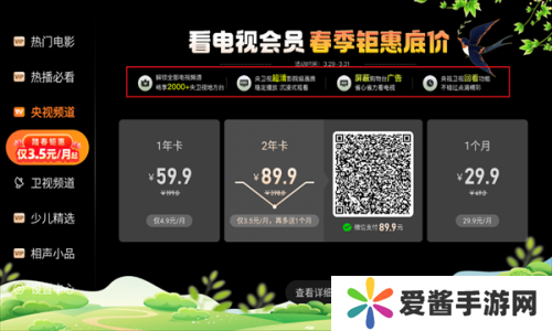 1、软件更新升级后,产生了热门电影、热播必看、少儿精选、相声小品等四个付费频道,主要是一些最新的电视剧,电影,综艺节目。