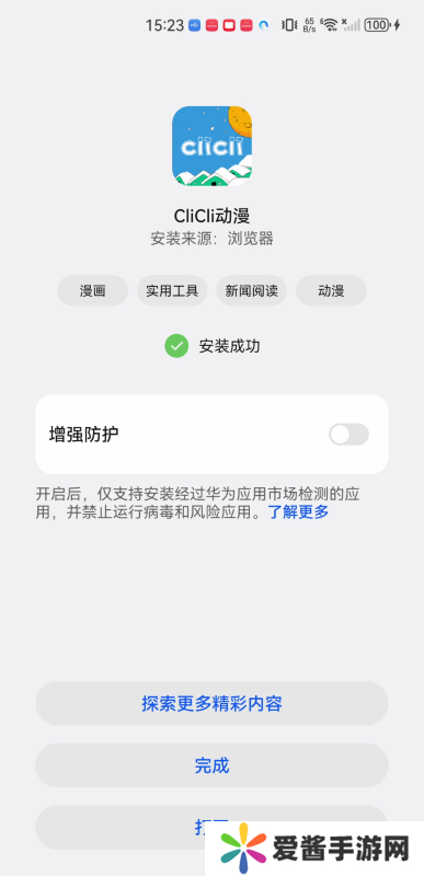 5、最终,出现绿色对号,说明“安装完成”,点击打开,即可体验。(如果出现安装失败的情况,可以到官网点击下载)