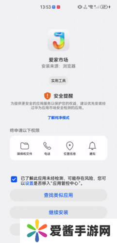 3、点击勾选“已了解此应用未经检测……”,点击“继续安装”。