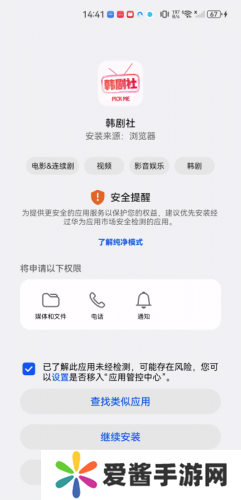 3、第三步,点击勾选“已了解此应用未经检测……”,然后再点击“继续安装”。(出现安全提醒,不用惊慌)