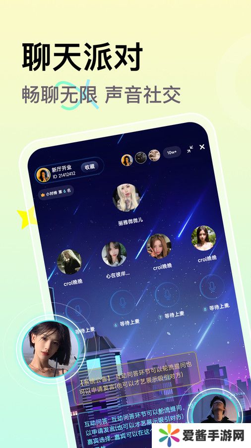 在房间或活动中,可以听到其他用户的语音发言,也可以自己发言。可以通过语音聊天的方式与其他用户进行交流和互动。