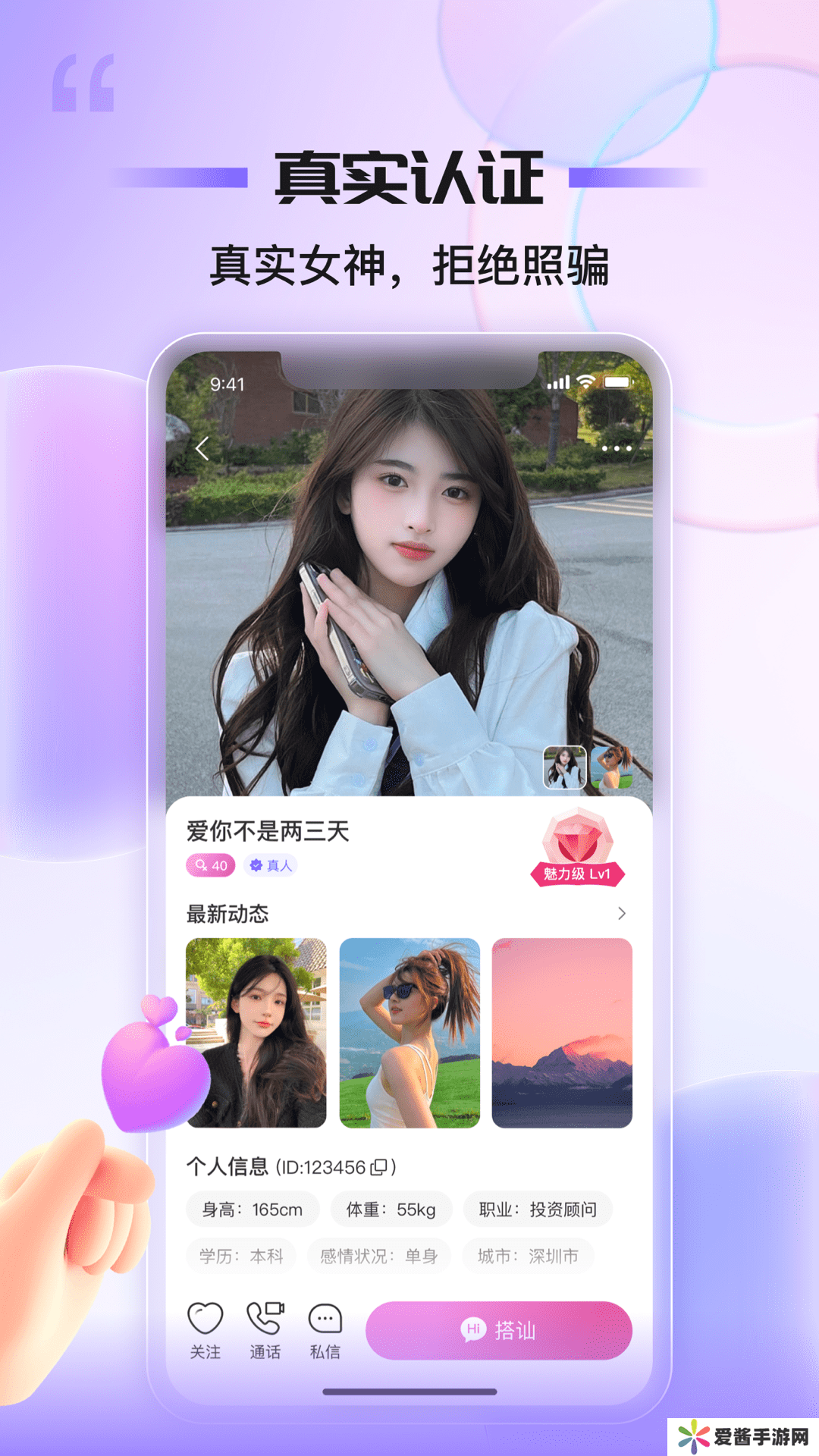 同心同悦app亮点1、真实的认证,真正的女神,拒绝一切形式的照片欺诈;