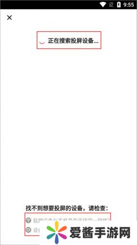 4、如图,已经开始搜索,如果搜索不到设备,那么就要注意以下两点:1、投屏的设备与手机是否连接了同一网络。2、设备是否支持投屏。
