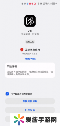 2、系统发现恶意应用,可能是误判,需要点击“了解风险”。