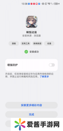 5、最终,出现绿色对号,说明“安装完成”,点击打开,即可体验。